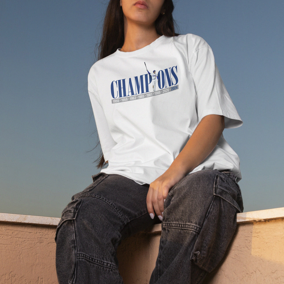 Celebrate the Dodgers' legendary championships with our exclusive tee and sweaters!